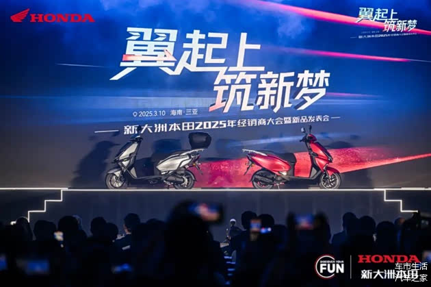 2025年3月10日,新大洲本田在海南三亚隆重召开“翼起上 筑新梦”新大洲本田2025年经销商大会暨新品发表会,新大洲本田重点经销商代表和行业媒体齐聚一堂,共同见证5款重磅车型的发布。