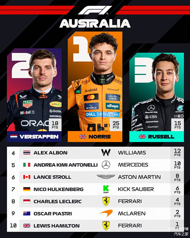 2025赛季的揭幕战充分展现了迈凯伦车队的强劲实力,而法拉利车队则需要在后续比赛中调整策略和技术,以缩小与第一集团的差距。红牛和梅赛德斯车队也需在赛车性能和稳定性上继续努力,才能在竞争激烈的赛季中保持竞争力。随着赛季深入,轮胎配方调整、引擎升级禁令的解除,以及车手市场的暗流涌动(如维斯塔潘与梅赛德斯的绯闻),都将成为左右冠军归属的关键变量。阿尔伯特公园的硝烟散尽,我们上海国际赛车场再见!