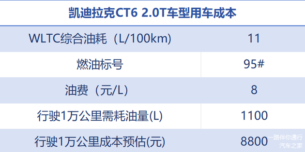 以普通家庭用户一年驾驶1万公里为例,凯迪拉克CT6需消耗1100L 95号汽油,而汽油的价格又忽高忽低,所以就取平均值按8元/升来看,凯迪拉克CT6行驶1万公里,首年用车成本需要花费8800元,这样的用车成本对于豪华品牌车型来说,属于中等水平。需要注意的是,随着驾驶里程和油价的调整,该数据也会有上下浮动空间,该数据仅供参考。