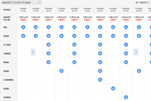 汽车的问世给人们带来便利,同时也需要常规的保养才能提升产品寿命,从而更好地为人们服务。根据凯迪拉克CT6保养手册来看,该款车的首次保养在5000KM,进行常规的机油和机油滤保养,往后的每次保养频率都是在7500KM左右,陆续更换空调滤清、空气滤清、燃油滤、制动液以及火花塞(整套)等,直至到第65000KM(54个月),凯迪拉克CT6就会将所有的保养项目都做了一遍。该款车的6万公里保养总成本预估费用为11681.0元,以普通的3年6万公里来看,凯迪拉克CT6的首年保养成本为3894元。