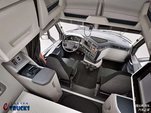 新一代沃尔沃VNR的内饰以驾驶员为中心:驾驶舱采用了符合人体工程学的布局,所有控制按钮和显示屏都触手可及,让驾驶员能够更加便捷、舒适地操作车辆。座椅设计宽大厚实,具备良好的支撑性和包裹性,能够有效缓解长途驾驶带来的疲劳感。