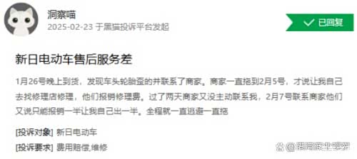 新日电动车于黑猫投诉平台共有429条投诉,已完成189条。近期在质量方面的投诉集中于“电池耗电快、骑行速度与描述不符、续航缩水”等,在服务方面的投诉集中于“售后不及时解决问题、商家拖延时间不处理问题、售后服务不佳”等。