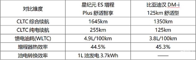 星纪元ES增程与比亚迪汉DM-i的核心差异,源于技术路线的不同。前者依托奇瑞“黄金增程技术”,搭载1.5T增程专用发动机,通过44.5%的全球超高热效率,实现每升燃油发电3.7kWh的转化效率,以上一些列数据,支撑起255km的CLTC纯电续航,这相当于汉DM-i 125km的两倍。日常通勤场景下,星纪元ES增程用户每周仅需充电一次,而比亚迪车主需频繁补能两次以上。