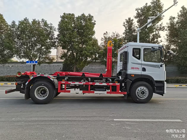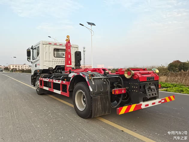 - 勾臂装置:采用全液压控制操作系统,操作简便、稳定。勾臂结构坚固耐用,具有自动锁紧功能,在起吊和运输过程中能确保垃圾箱不会脱落,安全可靠。可配备不同规格的垃圾箱,容积一般有 8 方、10 方等多种选择,满足不同用户的需求。
