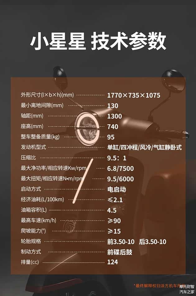 细节控狂喜的「通勤友好」设计, 2.2米最小转弯半径窄巷轻松掉头,420mm超宽防滑踏板,轻松置物解放双腿,70分贝怠速噪音接近办公室环境声级。前碟后鼓刹车+3.50-10真空胎组合稳控湿滑路面,高阻尼悬挂过滤80%路面颠簸。
