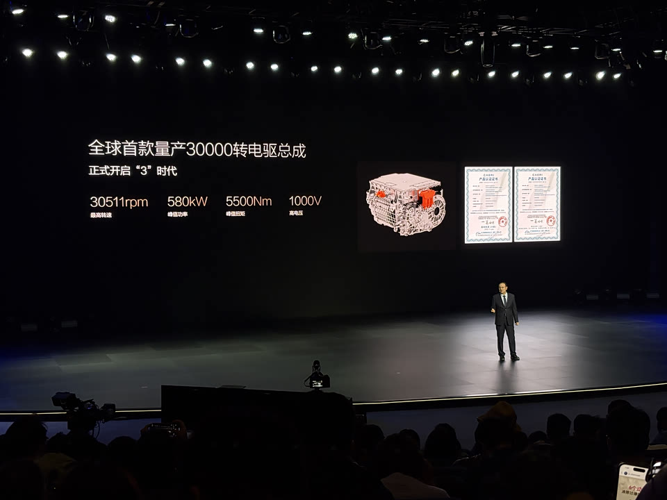 比亚迪发布量产全球最高转速的驱动电机——3万转电机。 电机最高转速达30511rpm,峰值功率580kW,峰值功率密度16.4kW/kg。电机可实现零百加速2秒级,极速超300km/h。 比亚迪为新能源汽车行业树立了新的性能标杆,推动电动车行业向更高性能发展,助理实现电动化深度整合。