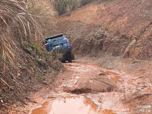 丛林越野部分其实没什么难度,除了地面有些湿滑,不要急加速,稳住方向即可。到了科目越野就有挑战了,下了雨泥地更加湿滑,一些大水坑也没法知道下面的路况。
