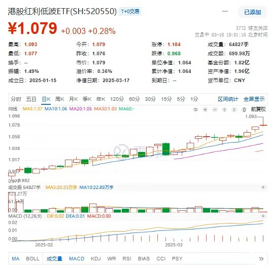 3月18日,恒生指数再度走强!截至10时21分,港股红利低波ETF(520550)涨0.37%,盘中冲击三连升;截至3月17日,该基金获资金连续3日净流入。