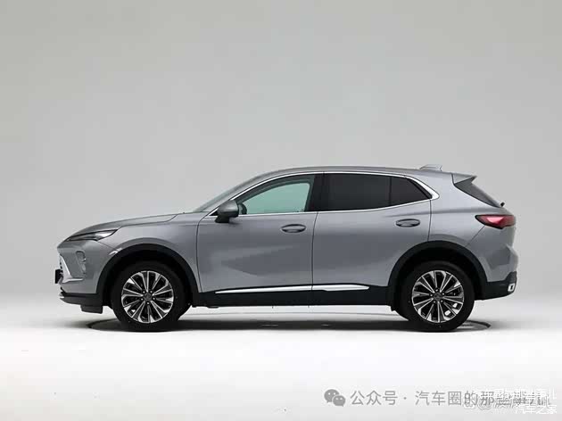 在车身的侧面,新车采用的是很有肌肉感的设计,它的运动效果也十分的明显,采用前倾式的后挡风玻璃,后翼子板的位置采用突出的线条装饰,车的底部是黑色的包围,上面采用了镀铬条的点缀,动态效果的车轮毂很有辨识度。新车的长宽高分别为4641/1883/1638mm,轴距为2779mm,它的整车块头并不大,在国产车当中也仅是紧凑型SUV下游的水准。