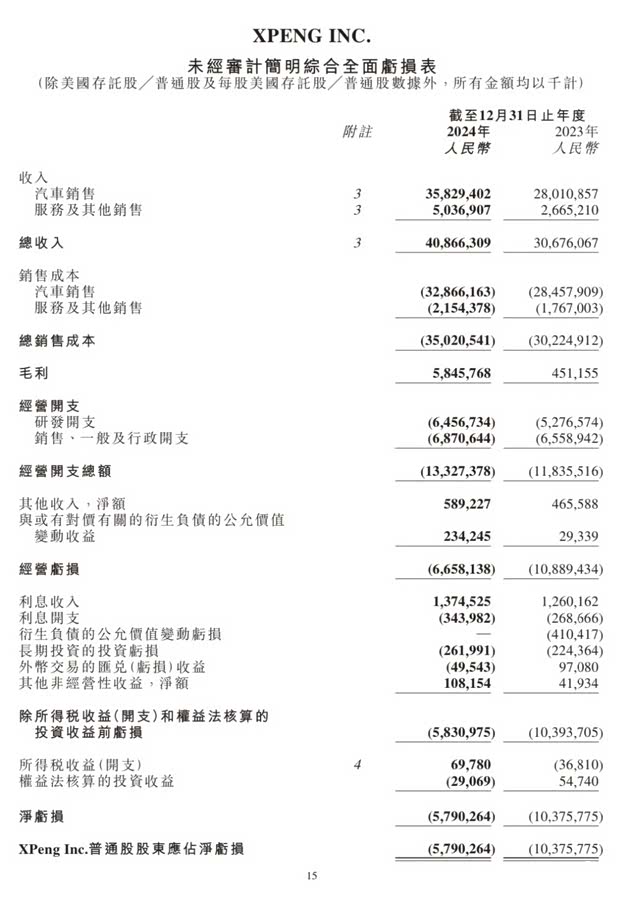 2024财政年度经营亏损为66.6亿元,相较而言,2023年则为108.9亿元。2024财政年度净亏损为人民币57.9亿元,相较而言,2023年则为人民币103.8亿元。而亏损情况得到大幅度改善:其中,去年四季度净亏损13.3亿元,上年同期净亏损13.5亿元,毛利率提升至14.4%,上年同期为6.2%。