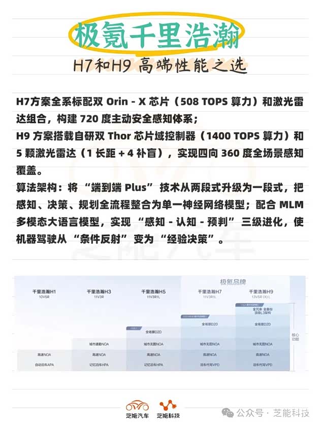 极氪在杭州举办的千里浩瀚智驾发布会,千里浩瀚融合了“千里科技”的算力与大模型能力以及“浩瀚智驾”的算法与工程优势,推出了H7和H9两套高阶智驾方案。