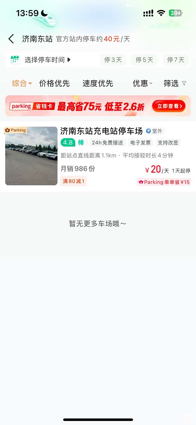 二、济南东站停车费对比