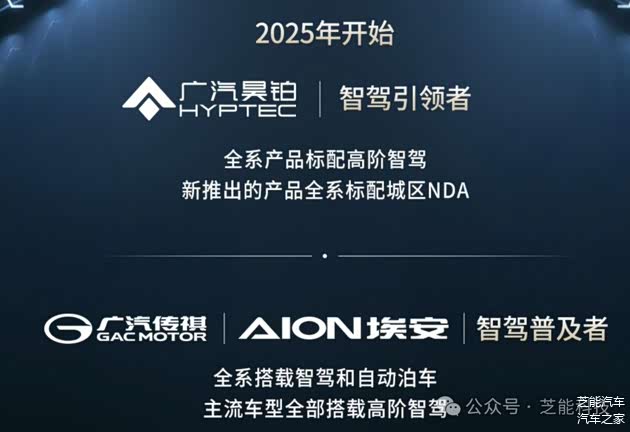 ◎ 传祺与埃安:定位智驾普及者,全系配备智驾和自动泊车,主流车型搭载高阶智驾。例如,埃安霸王龙和RT已将激光雷达高阶智驾普及至15万级市场。