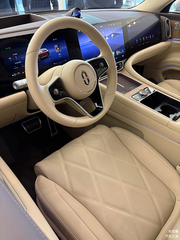 问界M9的内部装饰焕然一新!我们新推出了望舒杏、琥珀棕和松露棕三种个性化的配色选项(可选配1.2万种),并对座椅坐垫进行了加长和提升支撑,同时也更新了缝线的制作工艺。我们保留了三联屏、AR-HUD、水晶旋钮等所有经典配置,并新增了流媒体后视镜和华为星河通信系统,以打造移动智慧座舱。在流水的环境中,灯光与星环散射体相互映照,12W的无线快充技术和电子怀挡的细节完美结合,展现了豪华与科技的完美结合。