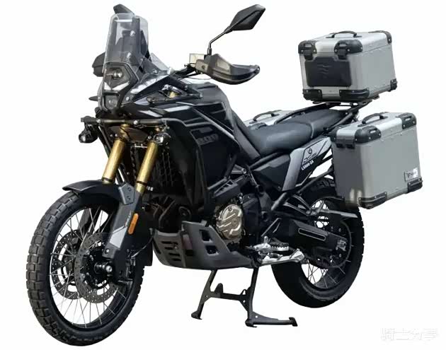 无极这次带来了LX800,它其实就是去年热议的DS800。从申报信息来看,该车整体风格没变,前脸会比较犀利,并配套有三箱和两颗小射灯,另外护杠也是标配,所以看起来会更硬核。发动机实际排量798cc、最大功率70KW,将采用前21后18寸的车条轮毂,因此功能性也会比较出色。