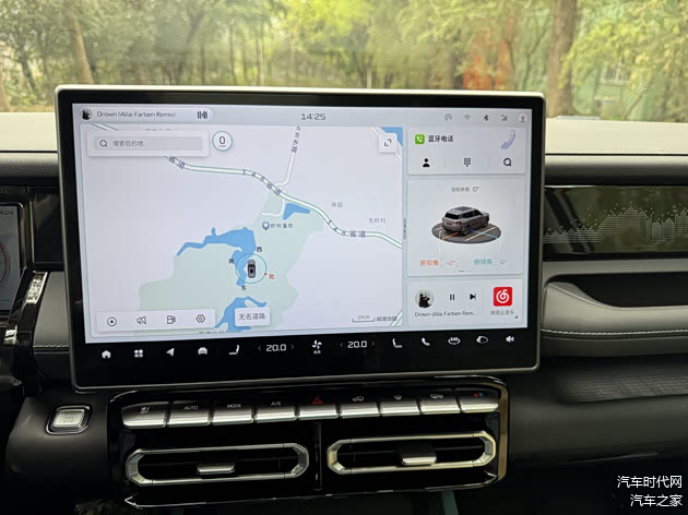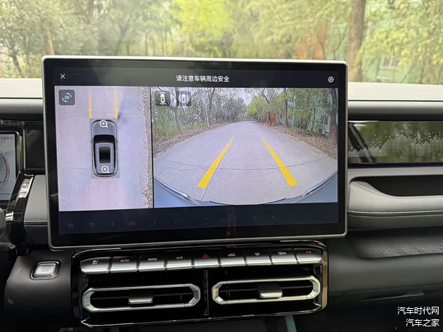 内饰设计以实用为主,但科技配置丰富。15.6英寸中控屏+10.25英寸仪表屏的组合支持华为HiCar/CarLife互联,语音控制可调节空调、导航等功能。L2.5级驾驶辅助系统在高速巡航时表现稳定,车道保持功能在弯道中自动微调方向,减少驾驶疲劳。540°全景影像(透明底盘)对新手司机及复杂路况驾驶有显著帮助,窄路辅助功能可自动识别障碍物并提示避让路径,提升安全性。