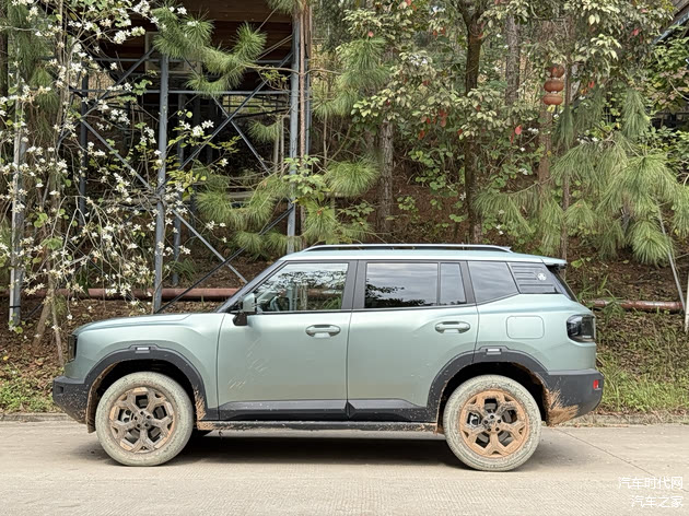 车身侧面通过悬浮式车窗、传统门把手及黑色轮眉/侧裙踏板突出硬派定位,花瓣状19英寸轮毂与曲面车身设计兼顾视觉张力与稳定性。尺寸方面,4706mm车长、1967mm车宽、1845mm车高及2810mm轴距,搭配高离地间隙与优化接近角/离去角,显著提升通过性。同时,侧裙踏板与轮眉铠甲设计进一步强化越野元素,而均匀的车身缝隙处理则彰显工艺质感。