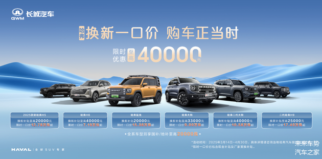 哈弗品牌的每一次成功,都离不开对产品品质的极致追求和对用户需求的精准把握。35年来一直专注SUV领域的深耕积淀,以过硬的产品质量、丰富多元的产品线以及贴心周到的售后服务,树立起SUV造车典范,赢得消费者的广泛赞誉。此次“哈弗换新一口价”活动,不仅是对哈弗品牌市场号召力的一次自信展现,更是对消费者长期支持与信赖的真诚回馈。以哈弗猛龙为先锋,未来哈弗汽车会在新能源赛道持续突破边界,用始终如一的可靠品质守护每一段旅程,以永不止步的技术革新践行"做每个时代最好的SUV"的初衷愿景。