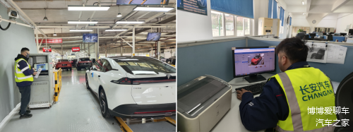 (图:长安汽车员工正在进行预查验工作)
