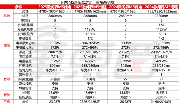 ▲问界M5新旧款对比