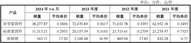 从量价的角度来看,公司2021-2023年期间收入增长是量价齐升的推动,具体来看,紧固件的产品单价和销量均有提升,而座椅锁产品主要是靠销量提升推动收入增长。