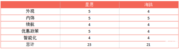 最后附上编辑对两辆车的评分表吧,仅代表个人观点仅供参考哦!