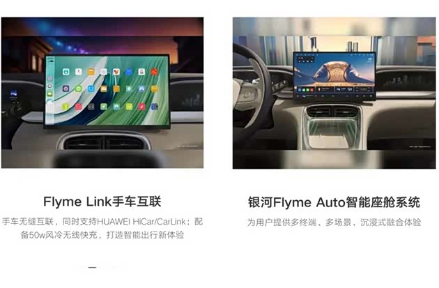 星愿:14.6英寸2K屏+Flyme Auto车机,支持双区语音交互,华为HiCar/Carlink互联,流畅度堪比旗舰手机。