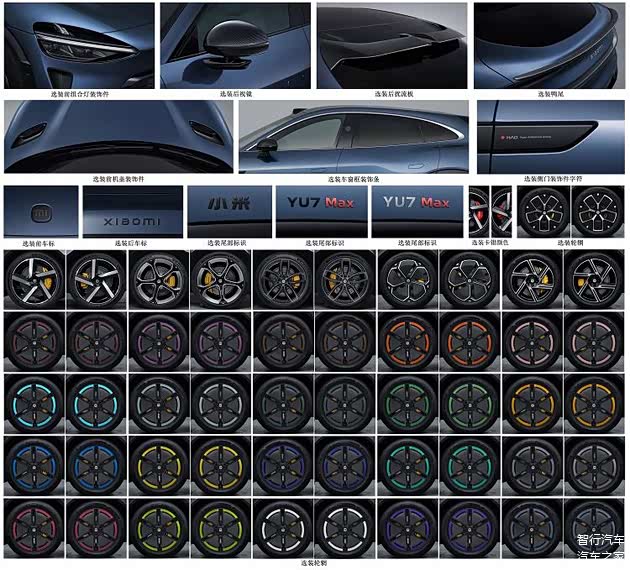 此次公布的照片,还曝光了小米 YU7 的其他一些选装细节,例如车头大灯组、刹车卡钳配色、后视镜造型、扰流板以及开孔前机舱盖等,相比 SU7 配置更加丰富。