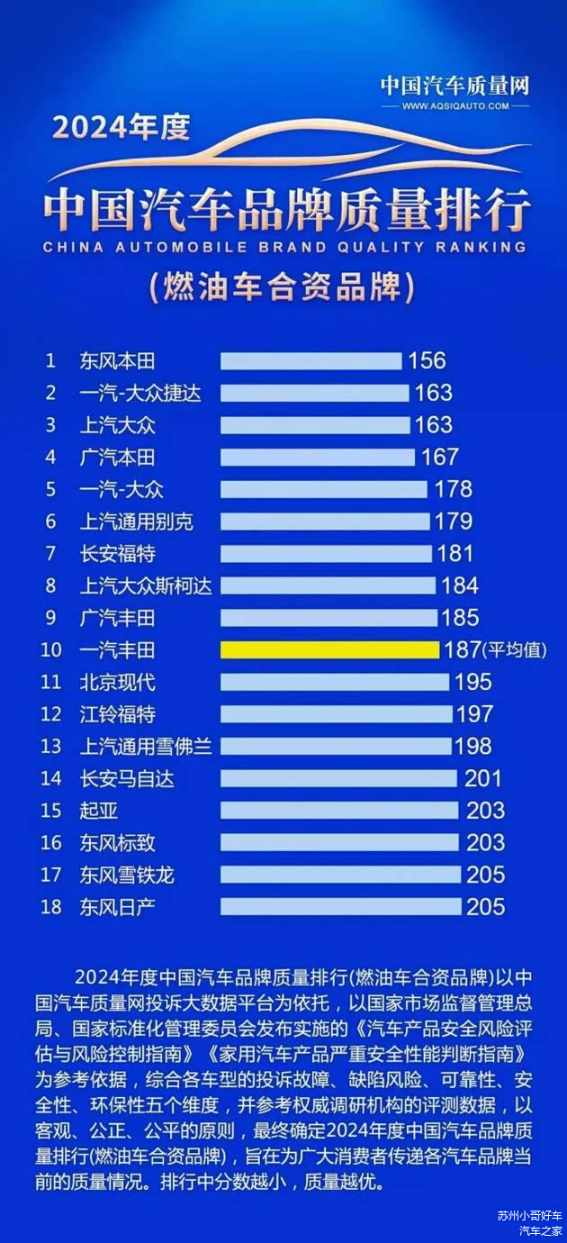 近期,中国汽车质量网发布了2024年中国汽车品牌质量排行榜(燃油车合资品牌),在一众强劲对手中,东风本田凭借最低潜在风险和卓越品控脱颖而出,以156分的成绩蝉联榜首。今日的荣耀,是过往坚守的勋章。东风本田的再度登顶,不仅是广大用户和专业机构对其质量坚守的认可,更展现出东风本田品质标杆的超然实力。
