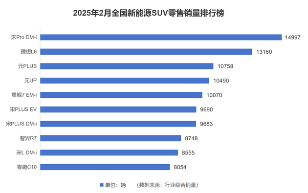 宋Pro DM-i上市即封神,持续热销,成为A级SUV油转电的引领者。2024上半年A级SUV销冠、12月插混SUV销冠,今年2月更勇夺新能源SUV零售销量排行榜冠军,并助力王朝宋家族实现198万辆(截至2025年2月)的累计销量,直接改写SUV市场格局。反观星舰7 EM-i,作为2024年底才出道的“新秀”,用户口碑还在慢慢积累阶段。
