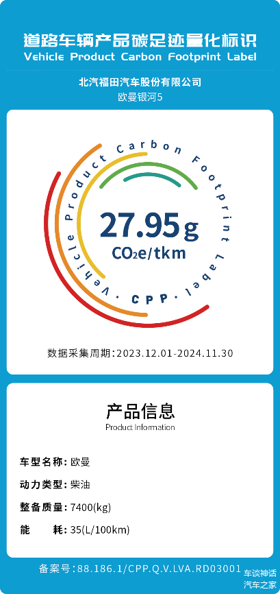 福田欧曼银河5、欧曼星翼碳足迹量化标识