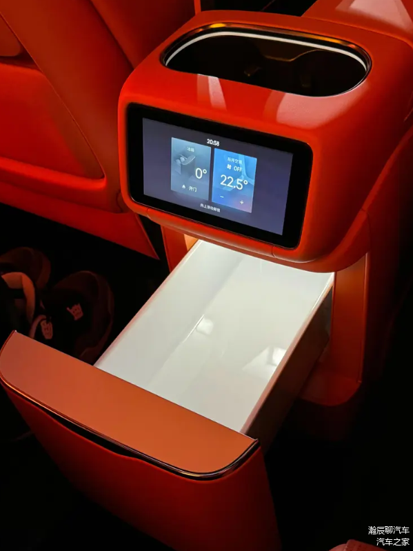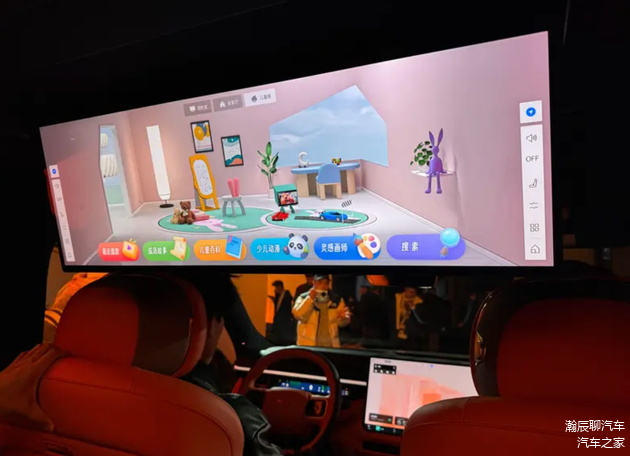第一个亮点,是它超大的后排娱乐屏。如今,第二排带“彩电”的新能源SUV并不算少,但尺寸达到30英寸的“彩电”,还真的不多见,更何况,这块OLED屏幕的分辨率达到了6K,不夸张地说,显示效果比不少人家里的LCD电脑显示器好多了。最重要的是,据我了解到的信息来看,这块显示屏最多可以分四个区域进行分屏显示。也就是说,出门在外露营的时候,遇到我想看的比赛,或者大家伙儿想看的节目有分歧,完全不需要妥协,可以一起观看,体验确实比传统的“彩电”好不少。