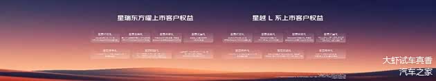 即日起购买星瑞东方曜惊鸿版+、今朝版车型限时享至高7000元现金红包礼,购买星越L系车型限时享至高15000元现金红包礼,以及金融、焕新、质享、保养、精品、流量等多重购车权益。