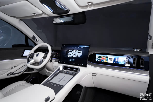 进入车内,双环抱式座舱设计营造出宽敞的环绕式空间,科技与优雅在此完美交融。铂檀灰与云锦米的内饰配色,低调奢华,尽显温馨与舒适。同级唯一的3.2㎡超大天幕玻璃,带来三排天空视野,通透明亮,犹如置身阳光房,尽享自然与舒适。