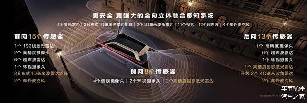 全向立体融合感知系统是车辆的“智慧之眼”。它配备1个顶置192线激光雷达、3颗高精度固态激光雷达、1套分布式4D毫米波雷达、2颗后向4D毫米波雷达等共36个感知硬件,配合高性能计算平台与华为自研拟人化算法,能在全场景、全天候精准感知动静态目标,轻松应对恶劣天气与复杂场景,保障行车安全。