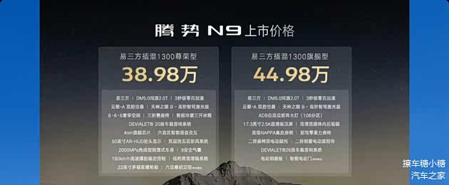 c.成本控制的双刃剑:依托比亚迪产业链(如自研电机、刀片电池),腾势N9具备更强的成本控制能力,但其“高配低价”策略可能挤压品牌溢价空间,长期制约高端化进程。