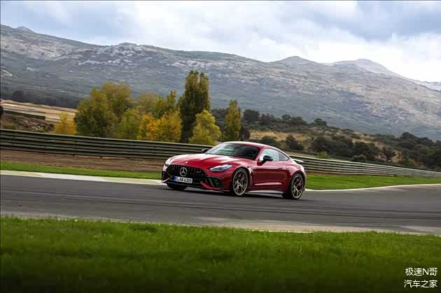 在西班牙马拉加的阿斯卡里赛道上,当以竞赛模式出发时,赛道是湿的,但环境温度温和。Cup 2 R 轮胎能立即稳稳咬住赛道表面。4Matic + 全轮驱动系统完全可变,竞赛模式下更偏向后轮驱动,给人可靠感觉。一开始全力加速时会触发稳定性控制修正,但车辆中程动力强劲,挡位比设置紧密,提前换挡能让 Pro 版车型感觉稳定且充满力量,跑出更快单圈成绩。