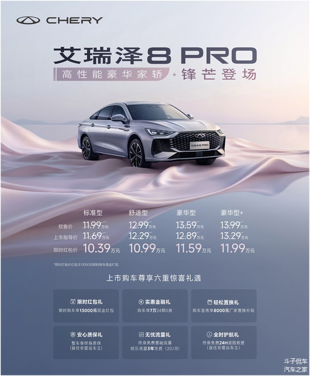为了助力年轻用户轻松拥有全新奢享出行新体验,艾瑞泽8 PRO还带来六大购车权益: