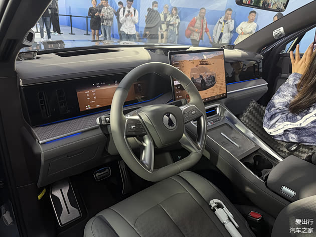 进入车内,腾势N9采用了环抱式座舱设计,营造出温馨舒适的驾乘氛围。中控台和门板上的木纹装饰更增添了几分豪华感。整体布局沿用了家族式设计风格,配备了12.3英寸的液晶仪表、17.3英寸的中控大屏以及同样为12.3英寸的副驾屏幕,科技感十足。