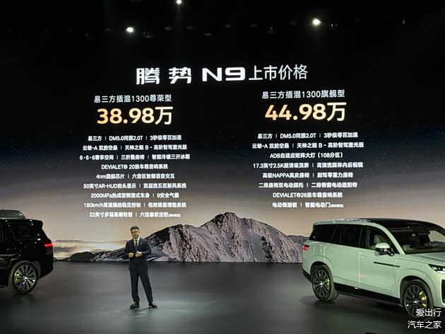 3月21日,腾势品牌正式推出了旗下的全新大型SUV——腾势N9,此次共上市两款配置车型,价格区间锁定在38.98万元至44.98万元。作为一款新能源大型SUV,腾势N9首先亮相的是插混版本,而纯电版车型则会在后续与大家见面。新车采用了易三方技术平台,搭载了2.0T发动机与三电机的插混系统,实现了三秒级的零百加速,综合续航里程更是超过了1300公里。