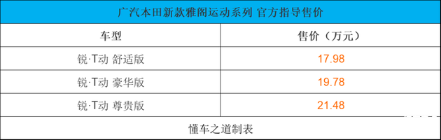 3月20日,广汽本田新款型格正式上市,该车共推出7款配置,售价区间为12.99-17.09万元。新车还推出了两大选装包。作为改款车型,新车在外观上有明显的调整,同时配置上也有优化,并提供两款选装包,动力方面,提供1.5T发动机和2.0L油电混动系统。其中1.5T发动机最大功率134千瓦,峰值扭矩240牛·米,匹配6挡手动或CVT无级变速箱;2.0L油电混动系统综合最大功率为149千瓦,匹配E-CVT电子无级变速箱。新车上市三:广汽本田新款雅阁运动系列