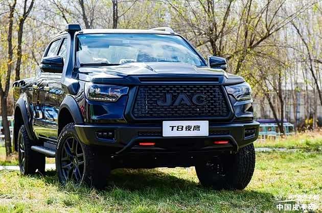在江淮皮卡的产品系列中,T8系列车型是旗下主销车款,包括普通版本与PRO版等多款车型。江淮T8 PRO夜鹰是该车型的原厂改装越野皮卡,前后保险杠、侧踏板均更换为防护性能更好的金属材质,并加入涉水喉、熏黑轮毂、AT轮胎等,进一步强化了整车越野风格与性能。