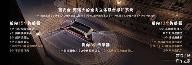 问界M9对全向立体融合感知系统进行了升级,增添了3颗高精度固态激光雷达以及3颗分布式4D毫米波雷达矩阵等感知硬件设备。通过这些升级,车辆能够在全场景、全天候的条件下,对动态和静态目标,包括各种异形物体,实现精准感知。