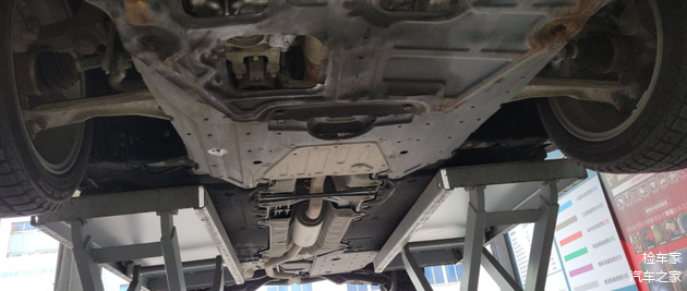 发动机、变速箱底下还是比较干爽的,没有看到任何一处渗漏,日系车在这方面,真的还是有点东西的,咱不得不服。再看了油底壳下面,也没有因为托底导致变形,看来托底只是把护板刮到了而已。