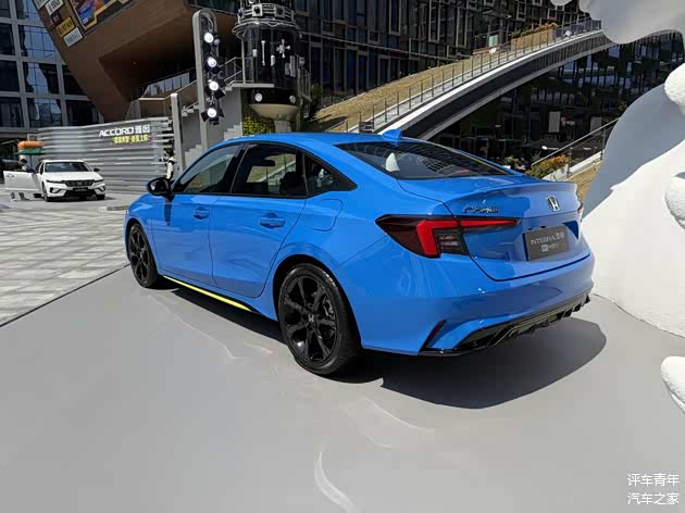 尾部混动版与燃油版基本保持一致,两侧尾灯组采用较为狭长的C字形设计,就算在没有点亮的情况下也有着不错的辨识度。燃油版下方采用了大尺寸的黑色包围和隐藏式排气布局,而混版动下方黑色包围造型更加运动,并有黄色装饰条点缀。