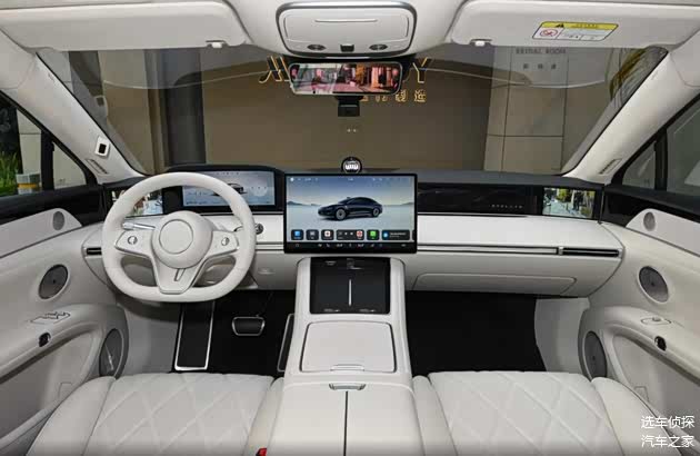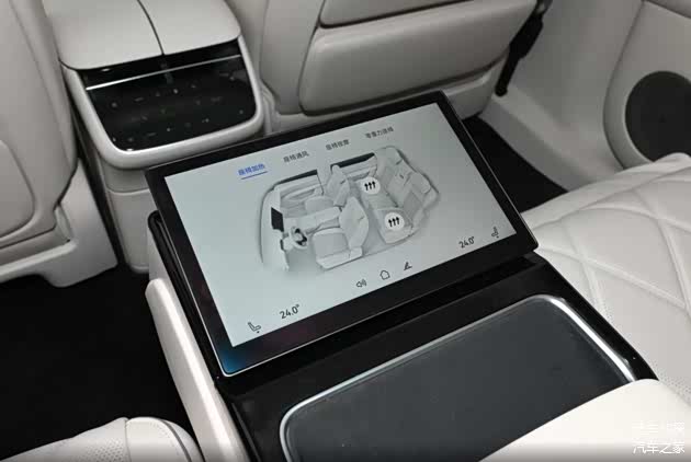 有趣的是,SUV和MPV中的后排电影幕布也出现在了这款轿车中,后排配备32英寸投影幕布,亮度与分辨率较前代提升,支持4K HDR片源播放,但由于后排空间有限,眼部与幕布距离较近,给人不适感,不适合长期观看。