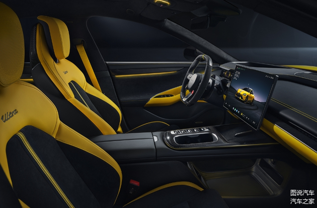 SU7 Ultra的外观不必多说,在SU7外观基础上加入了碳纤维车顶、侧裙以及尾部的大扰流板,还有一些黑化标识凸显动感。