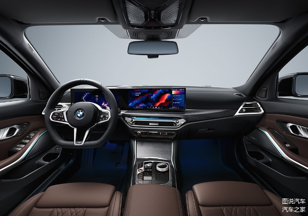 来到内部,3系采用10.25英寸全液晶仪表和14.9英寸中控屏,搭载宝马最新的iDrive8.5操作系统,运行流畅。长轴版提供了宽裕的后排空间,加上柔软的皮质座椅,乘坐非常舒适。
