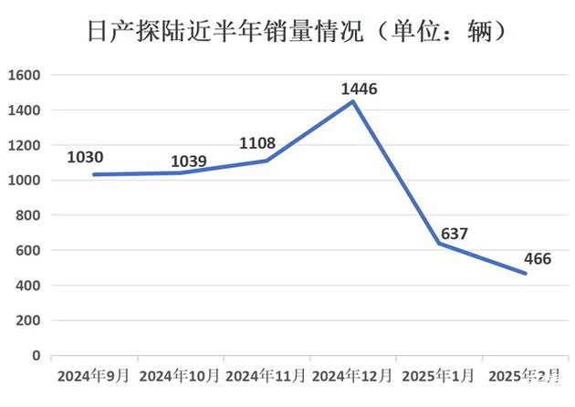 日产 探陆最早在去年3月份完成上市,新车竞争对手直指丰田汉兰达,本以为日产要拿出点真本事扭转品牌销量颓势,没想到探陆上市后依然不受待见,截至目前为止探陆仅有一个月实现销量破2000辆,最近半年卖得最好的一个月只有1446辆,今年2月份销量只剩下466辆。