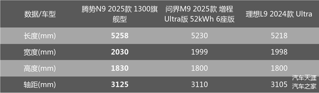 不过在空间方面,腾势N9无论是三维还是轴距,都是优于对手的。